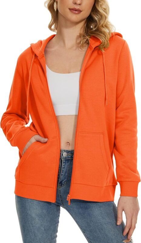 $41.99Women Fleece Lined Zip Up Hoodies Casual Hooded Jacket Workout Full Zip Sweatshirts Pocket Coats